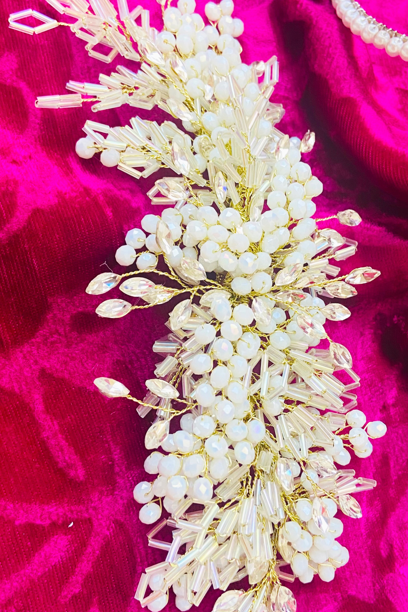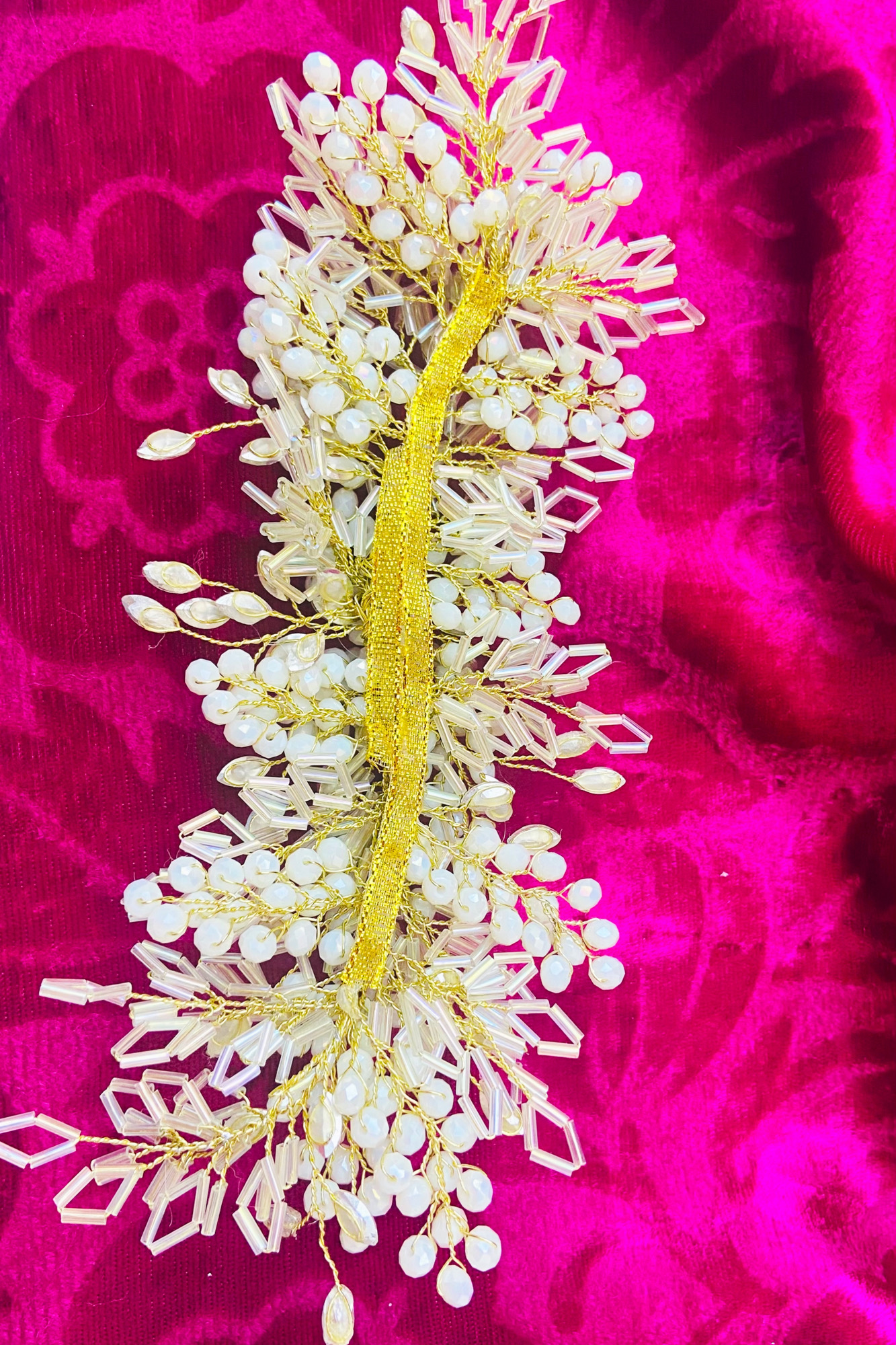 ریسه مو متریال استفاده شده:کریستال سفید مات ،ملیله،مارکیز چشمی بسیار باکیفیت طول ریسه: 24 سانت رنگ ثابت