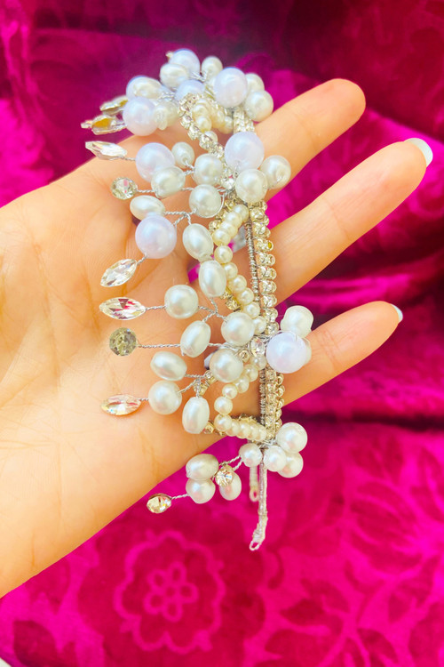 متریال استفاده شده : نگین متری ، نگین اتریشی ، مارکیز چشمی سنگی باکیفیت ، مروارید گندمی تپل سنگی و مروارید گرد سنگی