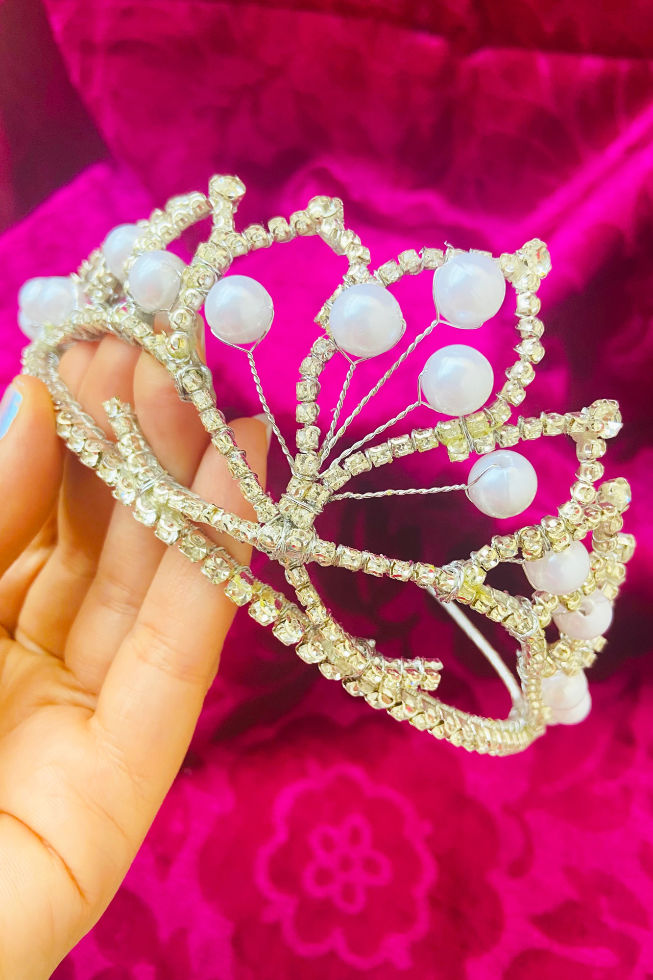 تاج ترکیبی مروارید و کریستال متریال استفاده شده: نگین متری و مروارید و نگین اتریشی باکیفیت قابل شستشو مناسب شنیون عروس و نامزدی